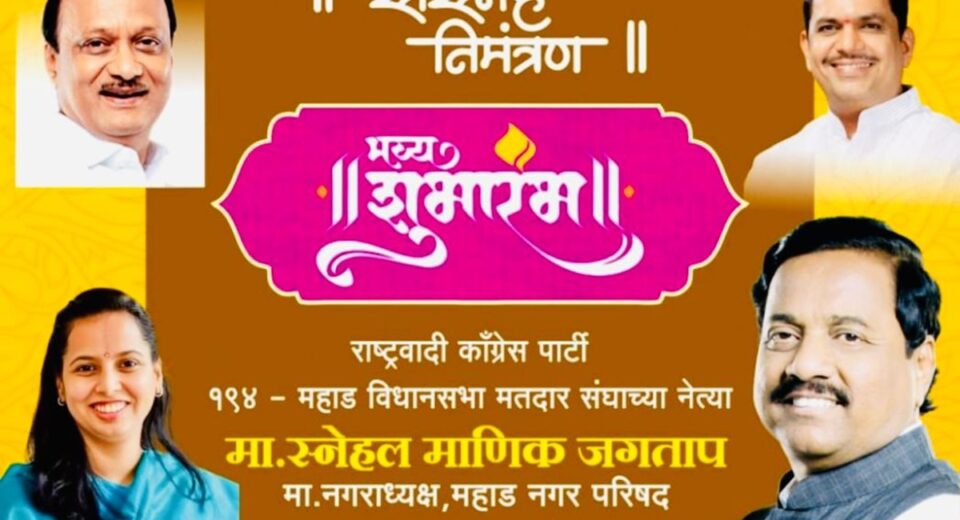 महाड – महाड विधानसभा मतदारसंघात आगामी स्थानिक स्वराज्य संस्थांच्या निवडणुकांच्या पार्श्वभूमीवर पुन्हा एकदा राष्ट्रवादी काँग्रेस (अजित पवार गट) चे राजकारण चैतन्यमय होताना दिसत आहे. माजी आमदार माणिकराव जगताप यांच्या कन्या आणि महाडच्या माजी नगराध्यक्षा स्नेहल माणिकराव जगताप यांनी राष्ट्रवादी काँग्रेस अजित पवार गटात प्रवेश केल्यानंतर पक्षाने महाडमध्ये नव्या जोमाने संघटन मजबूत करण्यास सुरुवात केली आहे. […]