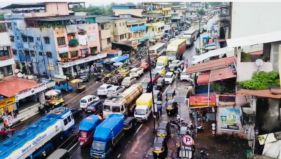 मुंबई–गोवा राष्ट्रीय महामार्गावरील माणगाव परिसरात दोन्ही दिशांना दोन–दोन किलोमीटर लांबीच्या वाहनांच्या रांगा लागल्या आहेत.