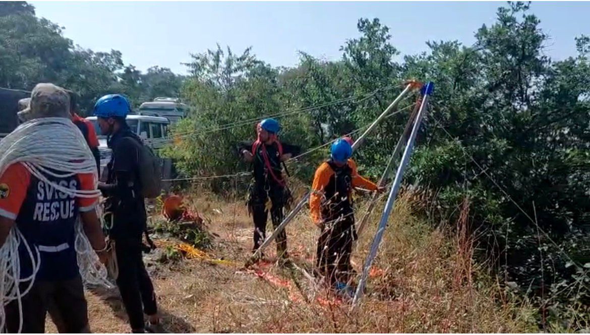 रेस्क्यू टीम रोपच्या साहाय्याने दरीत उतरून शोधकार्य सुरू